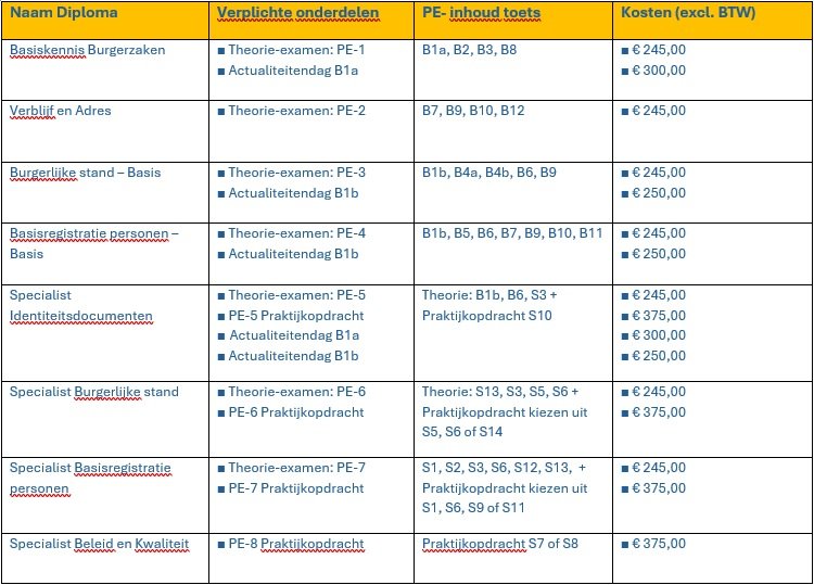 Voor elke diplomalijn is een specifiek PE-examen ontwikkeld.